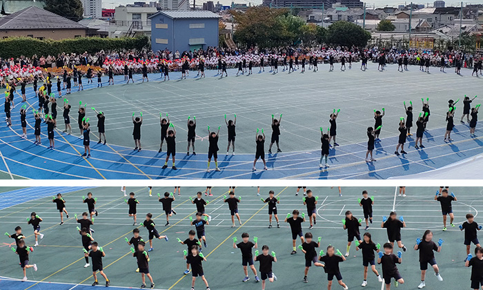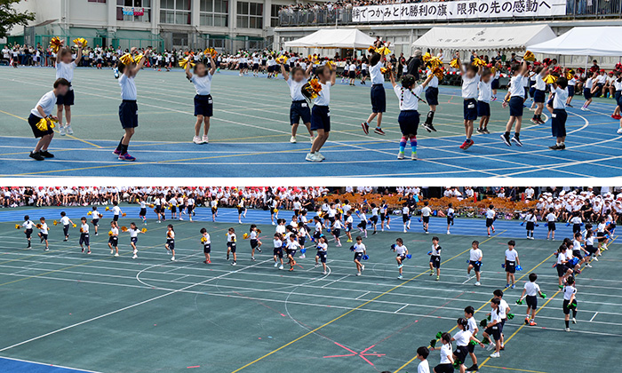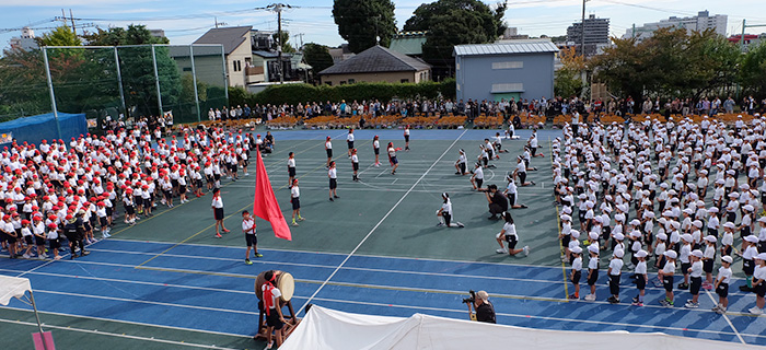 今年度は例年より遅い開催時期で過ごしやすい陽気での実施でした。暑さが落ち着いていたので児童席にテントはなく、観戦がしやすく、子どもたちの表情もよく見え応援にも熱が入りました。