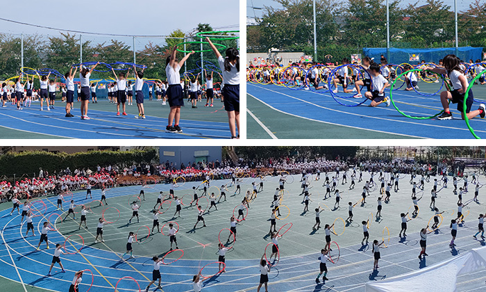 色とりどりのフラフープを使ってダイナミックに表現してくれました。堂々と難しい技にも挑戦する姿に日々の練習の成果と1年の成長を感じました。