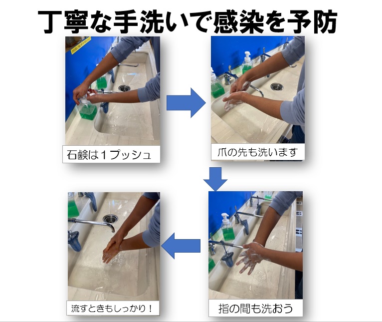 夏場に比べて、寒くなり手洗いが辛くなってくる時期です。感染症予防に効果的と言われている基本の「手洗い」や「うがい」がきちんとできているか、ご家庭でもお子様の様子を確認してみてあげてください。